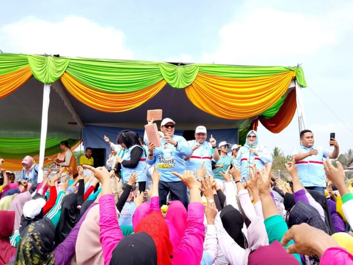 PEKALONGAN : Ratusan masyarakat kecamatan pekalongan antusias menyambut kedatangan pasangan calon (paslon) Bupati dan Wakil Bupati Lamtim nomor urut 1 (satu) Ela-Azwar Hadi, serta melakukan senam sehat dan gerebek pasar di kecamatan pekalongan kabupaten lamtim, kamis (26/09/24).